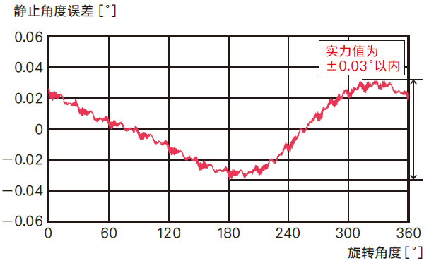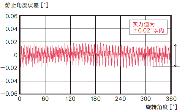 下面是整步运行是的静止角度误差实测值。可见停止精度为±0.02°的高精度定位。