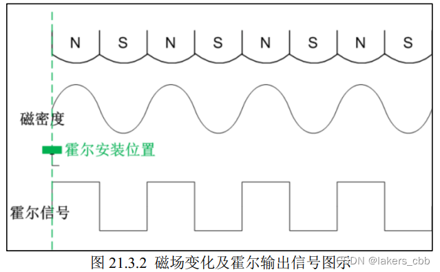 以霍尔传感器为参照物,转子旋转时,霍尔传感器检测到的磁场变化及输出信号如下所示。