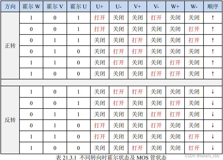 @1.通过上述章节,我们可以看到BLDC六步换向步骤,那么如何让电机正转(CW)、反转(CCW)。电机正转我们一般说的是电机顺时针旋转,电机反转我们一般说的是电机逆时针旋转。